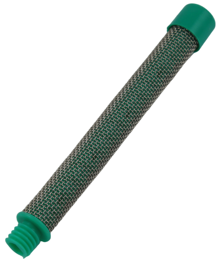 Фильтр для окрасочных пистолетов, зеленый, с резьбой 30 Mesh (30 ячеек/см2) Фильтр устанавливается в ручку окрасочного пистолета безвоздушного распыления и служит для тонкой фильтрации краски. Подбор фильтра необходимо производить в соответствии с диаметром используемого сопла и характеристиками краски.