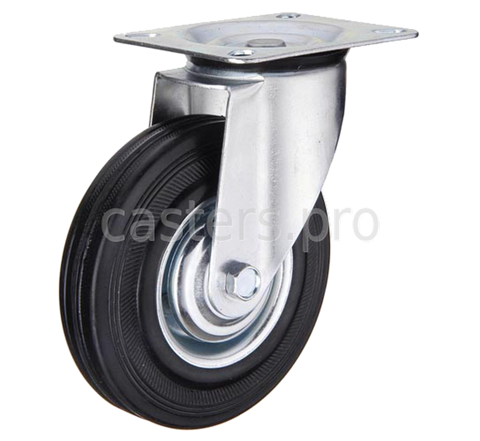 Колесо большегрузное резина черная поворотное GrOST SCD 250(d250х50мм, нагрузка 300 кг., материал обода чугун, материал шинки - черная резина, Материал опоры - оцинкованная сталь,)
